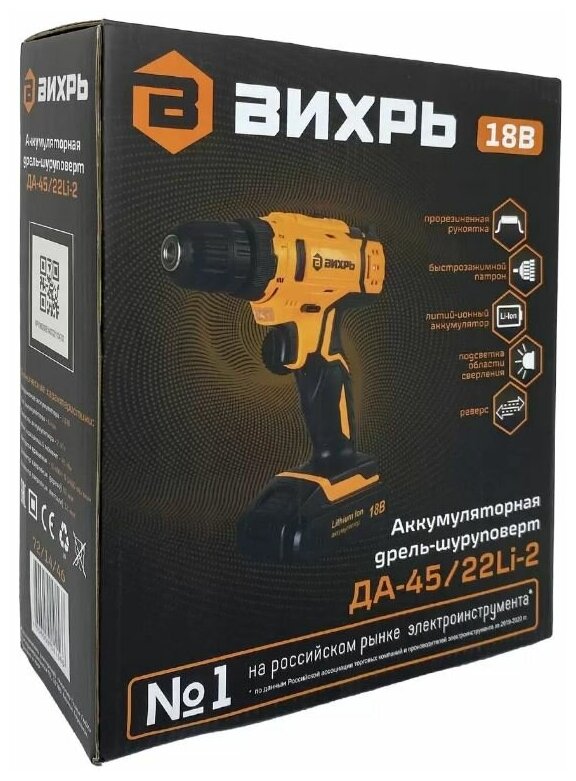- Аккумуляторная дрель-шуруповерт Вихрь ДА-45/22Li-2