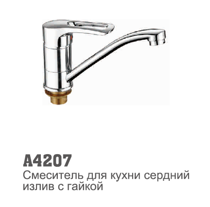 - 4207 Accoona Смеситель д/кухни 40мм короткий излив 15см гайка (4566) (1/10)
