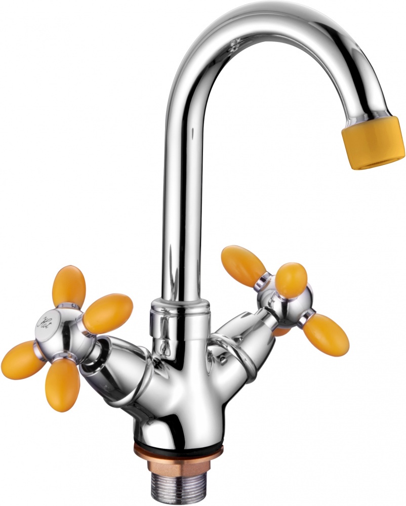 - 9482H Accoona Смеситель для ум. 1/2 кер гайка ЖЕЛТЫЕ ручки (1/10)