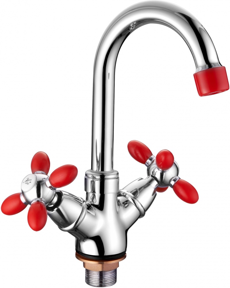 - 9482N Accoona Смеситель для ум. 1/2 кер гайка КРАСНЫЕ ручки (1/10)